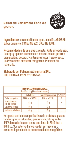 SALSA CARAMELOPEHUENIA$4,500 Ideal para helados, waffles o panqueques. Modo de conservación: cerrado, seco a temperatura ambiente. Contenido Neto: 420ml. - SALSA CARAMELOPEHUENIA cantidad + Añadir al carrito Categoría: SALSAS Marca: Pehuenia Productos relacionados SALSA CHOCOLATESEMIAMARGO MAIN FUSION $12,500 Añadir al carrito Buy via WhatsApp SALSA CHOCOLATE BLANCOMAIN FUSION $9,000 Añadir al carrito Buy via WhatsApp SALSA FRUTOS DELBOSQUE PEHUENIA $5,600 Añadir al carrito Buy via WhatsApp SALSA CHOCOLATEPEHUENIA $5,300 Añadir al carrito Buy via WhatsApp